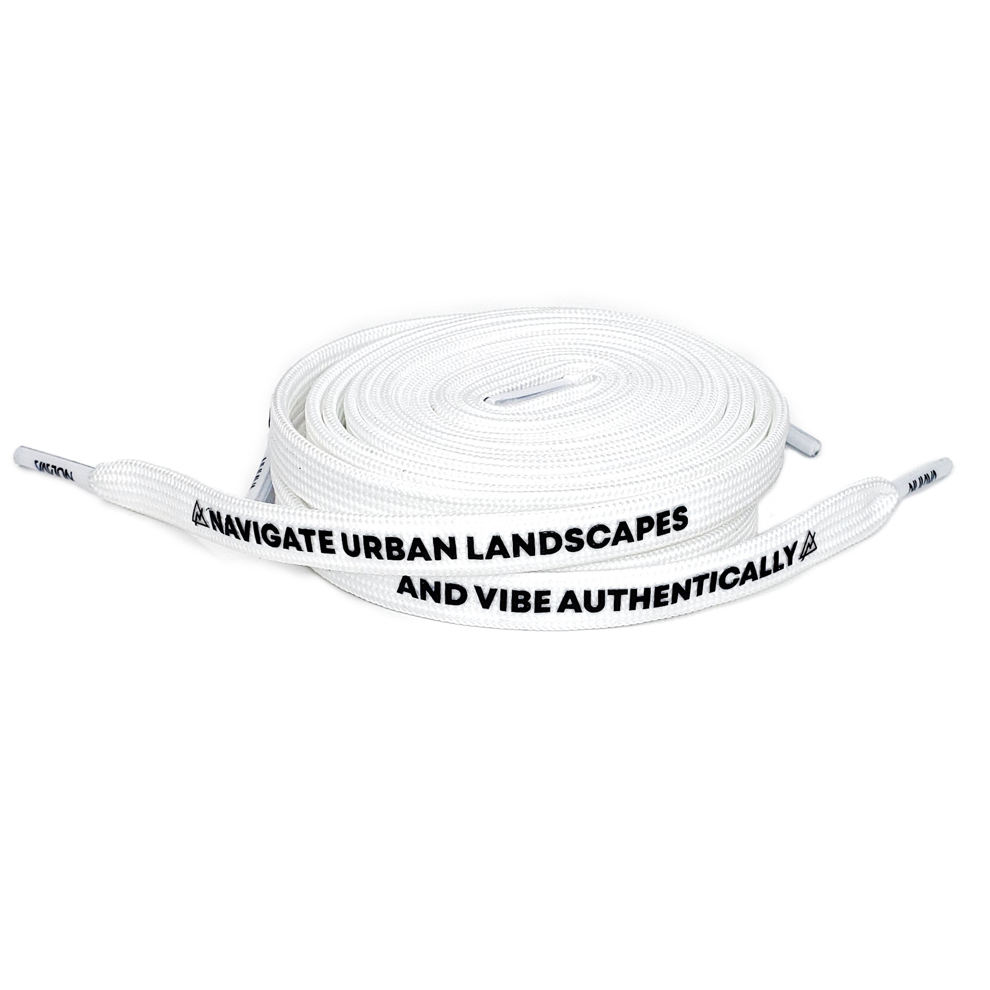 Nulava Silicone Printed "Navigate Urban Landscapes And Vibe Authentically" White Flat SHOELACES